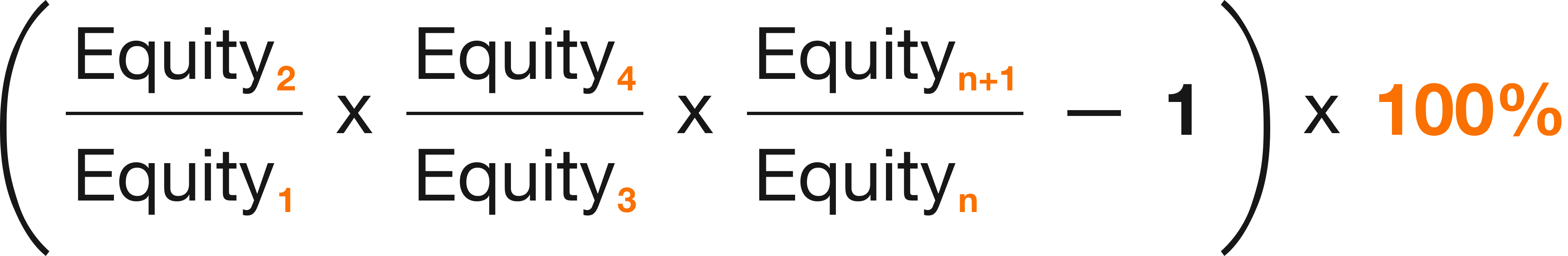 15.5 Кривая доходности в сервисе «Копи-трейдинг» строится по принципу вычисления взвешенной по времени доходности (Time Weighted Return – TWR). Метод TWR разбивает торговую историю счета на интервалы, которые возникают из-за балансовых операций (ввода/вывода средств). Для каждого интервала, внутри которого не было балансовых операций, вычисляется своя доходность. Общая доходность счета равна произведению доходностей за все интервалы.