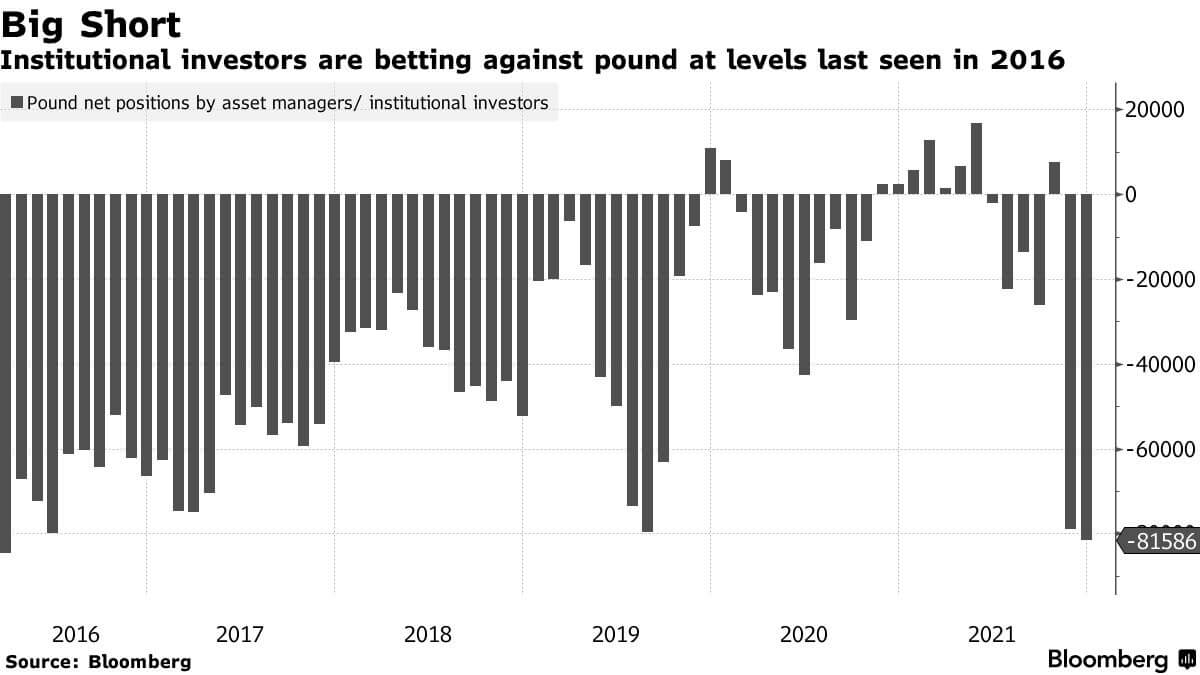 Согласно данным, опубликованным еще в середине декабря 2021 г., чистая спекулятивная позиция институциональных инвесторов в отношении курса британского фунта значительно сократилась и приблизилась к минимумам 2016 г.