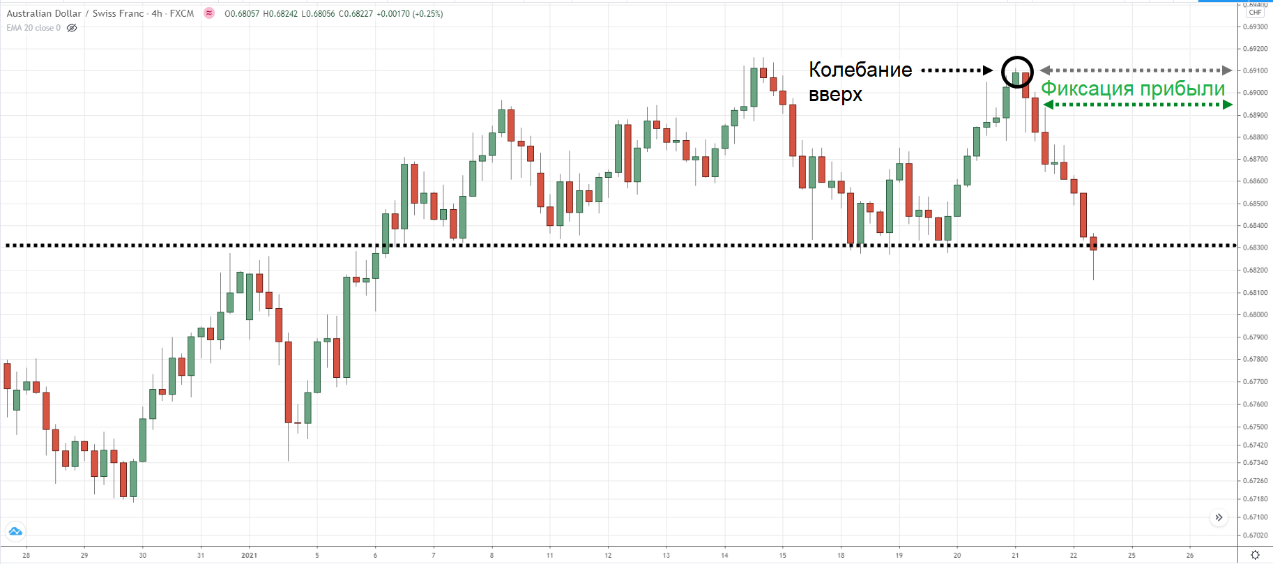 Вы хотите закрыть позицию до момента, как вступит в силу противодействующая сила. И если вы находитесь в длинной позиции, торгуйте до сопротивления, максимума колебания или др.