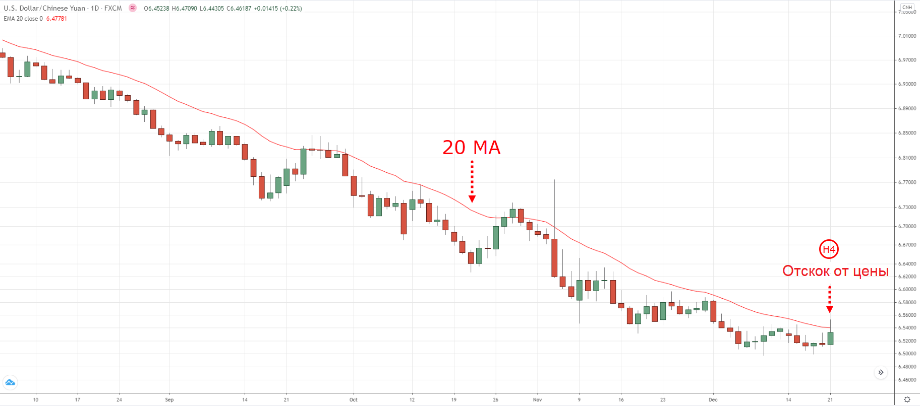 Однако это не все — зона сопротивления на 4-часовом интервале тоже совпадает с рыночной структурой (если ориентироваться на 20МА) на дневном графике.