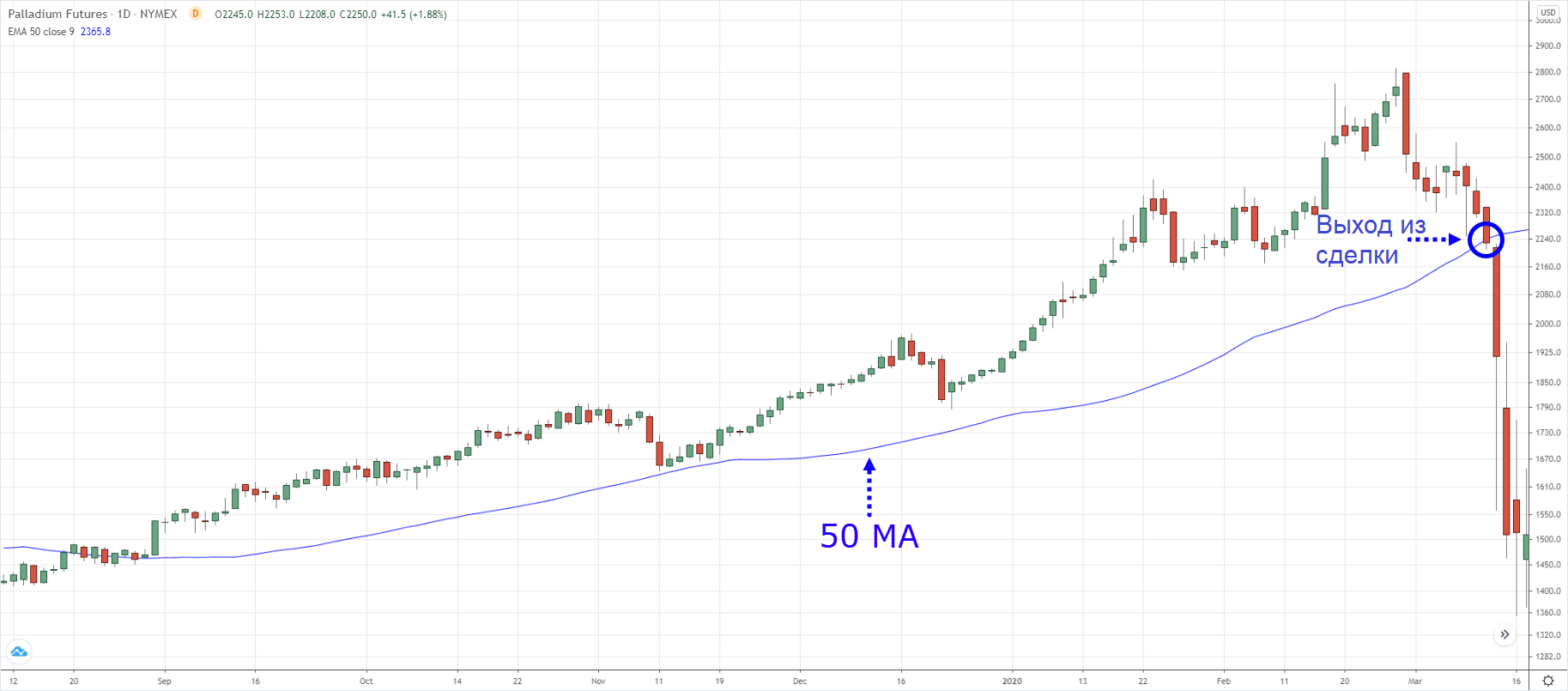 - Закрывайте позицию, когда цена достигнет вашего скользящего стопа.