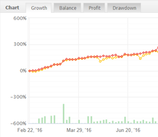 На графике с февраля по июнь — плавная восходящая кривая доходности. Предположим, что для всех сделок был выставлен большой стоп-лосс и скромная цель по прибыли. Например, 2 пункта прибыли и стоп-лосс 200 пунктов.