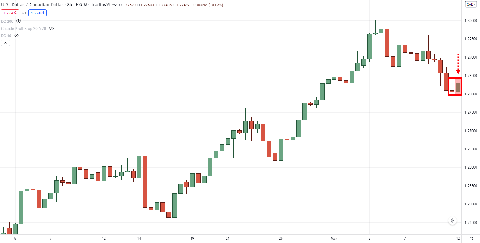 Теперь посмотрите на самую последнюю свечу:
