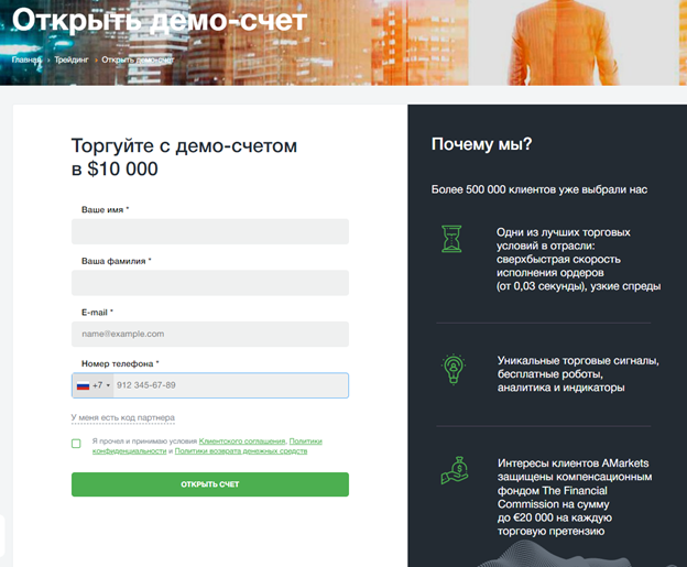 Хотите посмотреть видеоинструкцию о том, как открыть демосчет на AMarkets? Перейдите по ссылке.