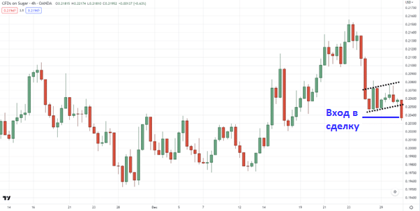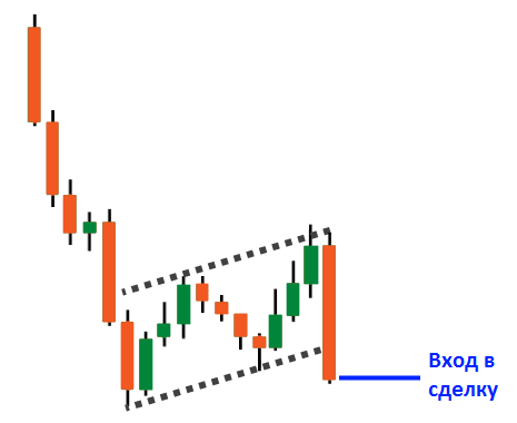 - Ждем паттерн флага и заходим по нему в сделку.
