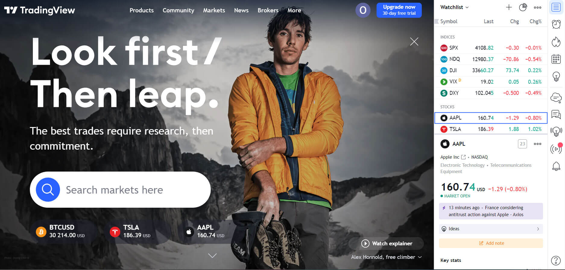 TradingView — отличный сайт с графиками, который помогает сделать массу вещей правильно и быстро. Многим нравятся “сверхчистые” графики (без лишней информации) и тот факт, что можно строить графики акций, Forex и др.