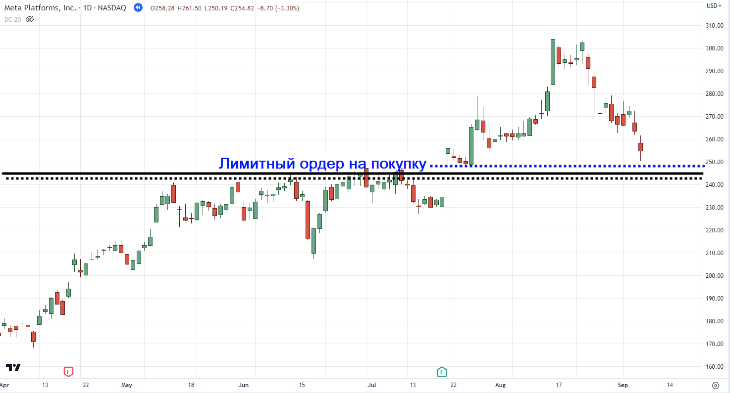Размещение лимитного ордера символизирует, что вы хотите, чтобы цена снизилась до момента вашего входа в рынок, чтобы вы могли войти по гарантированно выгодной цене.