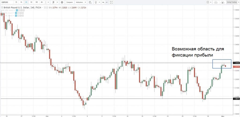 Для длинной позиции фиксируйте прибыль в зоне сопротивления. Для короткой — в зоне поддержки.