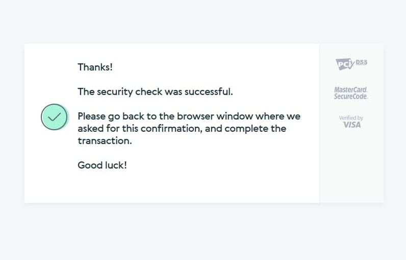 4. В новом окне подтвердите транзакцию. Инструкции для подтверждения будут отправлены на ваш адрес электронной почты. Пожалуйста, не закрывайте эту вкладку.